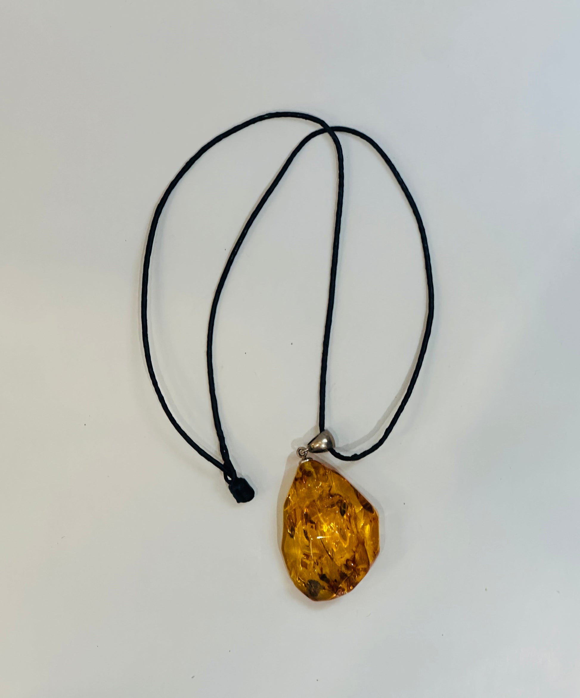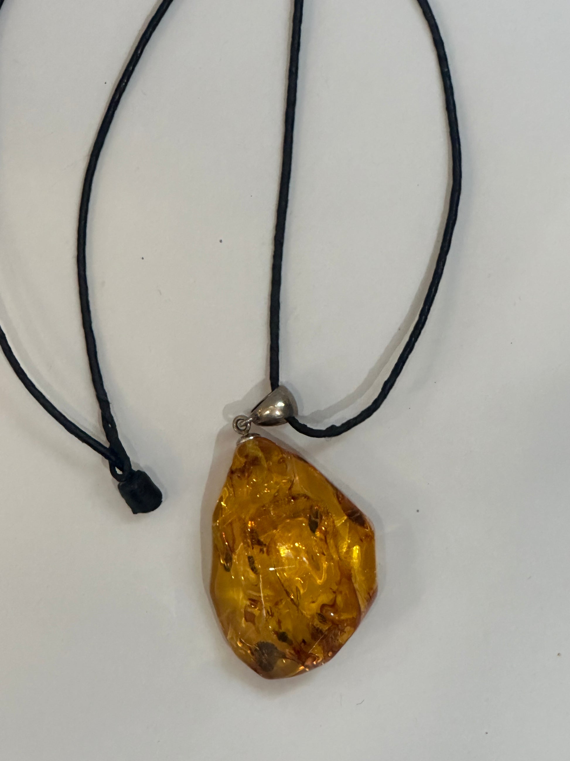 Golden Baltic Amber set on a Sterling Silver pendant on leather cord. Add a touch of elegance to your jewellery collection with this stunning Amber pendant.